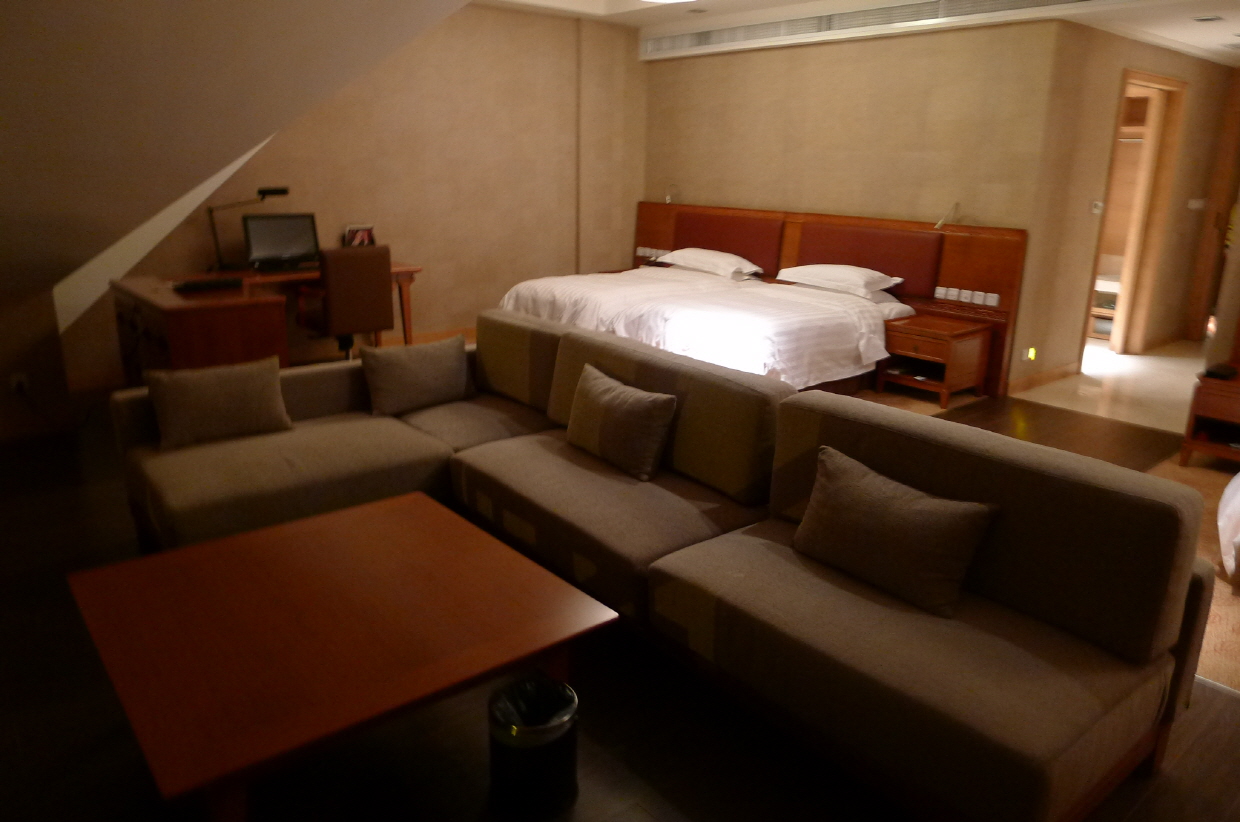 방안이 무척 넓고 창을 향해 커다란 소파가 놓여있어 창밖의 경치를 보기에 좋습니다.패밀리 스위트.