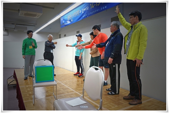 혼자 왔어도 슬로프에서 주황색 완장을 한 사람을 만나면 인사하고 친구가 됩니다. ^^